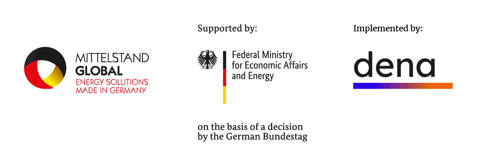 Siekiant pasaulyje pozicionuoti Vokietijos technologijas ir patirtį, Vokietijos energetikos sprendimų iniciatyva, vykdoma Federalinės ekonomikos ir energetikos ministerijos (BMWE), remia klimatui draugiškų energetikos sprendimų tiekėjus siekiant atverti užsienio rinkas. Dėmesys skiriamas atsinaujinančiajai energetikai, energetiniam efektyvumui, išmaniesiems tinklams ir energijos kaupimui, taip pat technologijoms, tokioms kaip „power-to-gas“ ir kuro elementai. Ypatingai orientuota į mažas ir vidutines įmones, Vokietijos energetikos sprendimų iniciatyva dalyviams teikia pagalbą pasiruošiant įėjimui į rinką bei ieškant, plėtojant ir užtikrinant naujas rinkas. www.german-energy-solutions.de/GES/Navigation/EN/Home/home.html